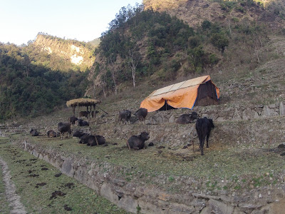 Fortunately Buda, his name, agreed to take me to a near by gathering of houses. Not a village but one of them was a “store.” This was to be my shelter for the night. The road/bus stop was three hours hike from where I landed and I landed at three in the afternoon. Only one bus leaves the valley system and it leaves at 12:00 noon each day. Spend the night it is. I was given a store room, a couple of blankets and some nice dohl bat for dinner – Rice and beans.